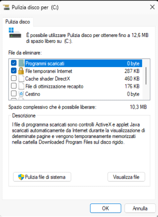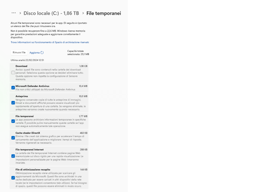 andare su dettagli, cliccare su file temporanei ed eliminare tutto
